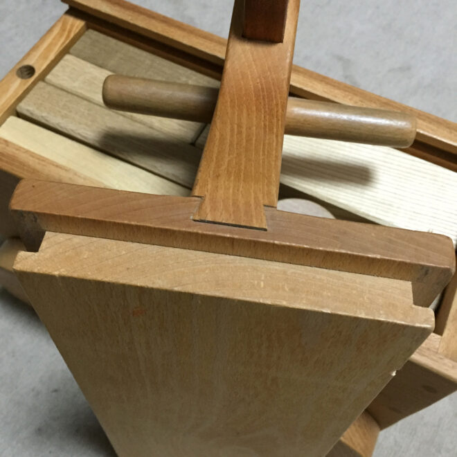 このころは基本ブナの木でできており、中にいろいろな種類の木で作った積み木が入っています。