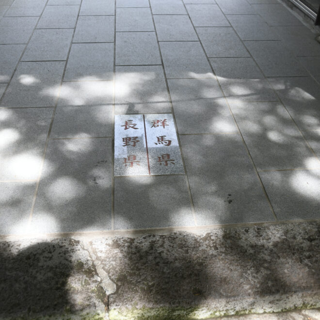 鳥居に向かって右側が群馬県、左側が長野県となっており、