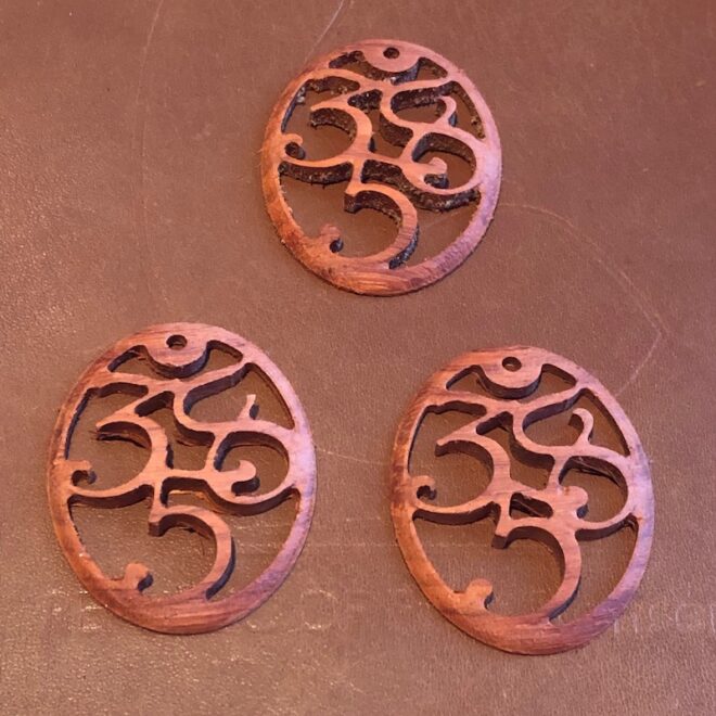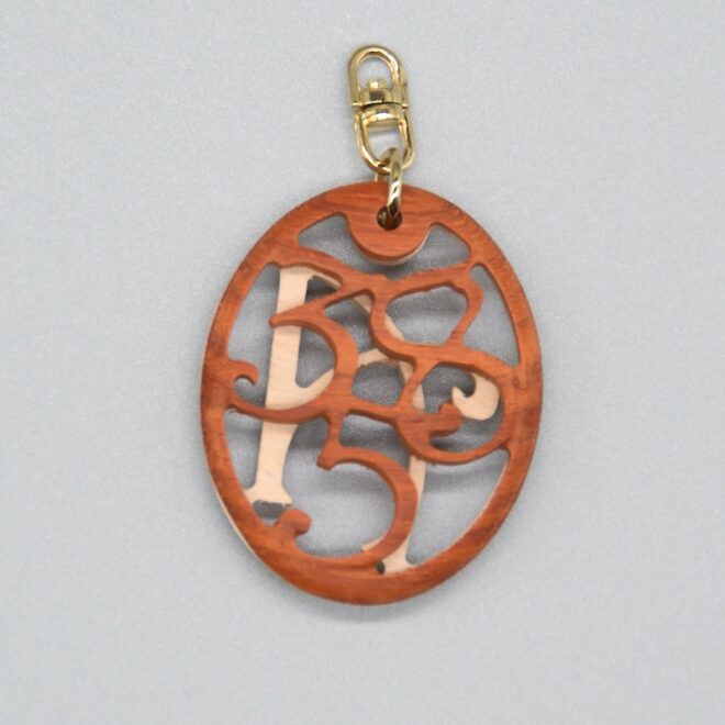 木で作った「ラッキーナンバー358」のネックレスです。
