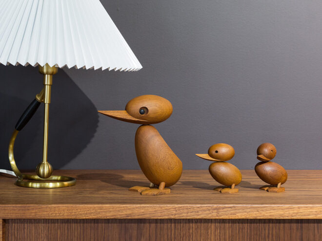 このエピソードに感銘を受けたデザイナー、**Hans Bølling(ハンス・ブリング)**は、木でアヒルの親子を表現。そうして生まれたのが「Duck & Duckling」です。