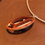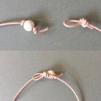 つけはずしについては、革ひもに取り付けた木の球を、反対側の輪に通して取り付けます。