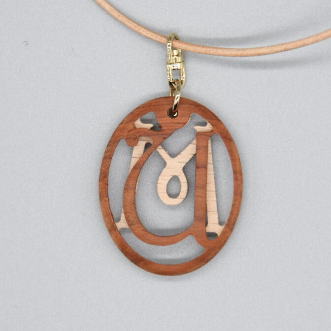 【木製】イニシャル・ネックレス オーバル 白/茶