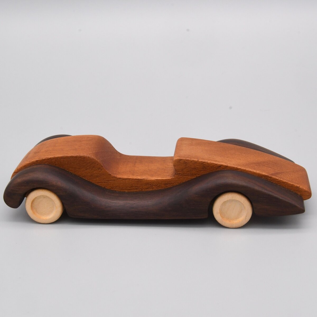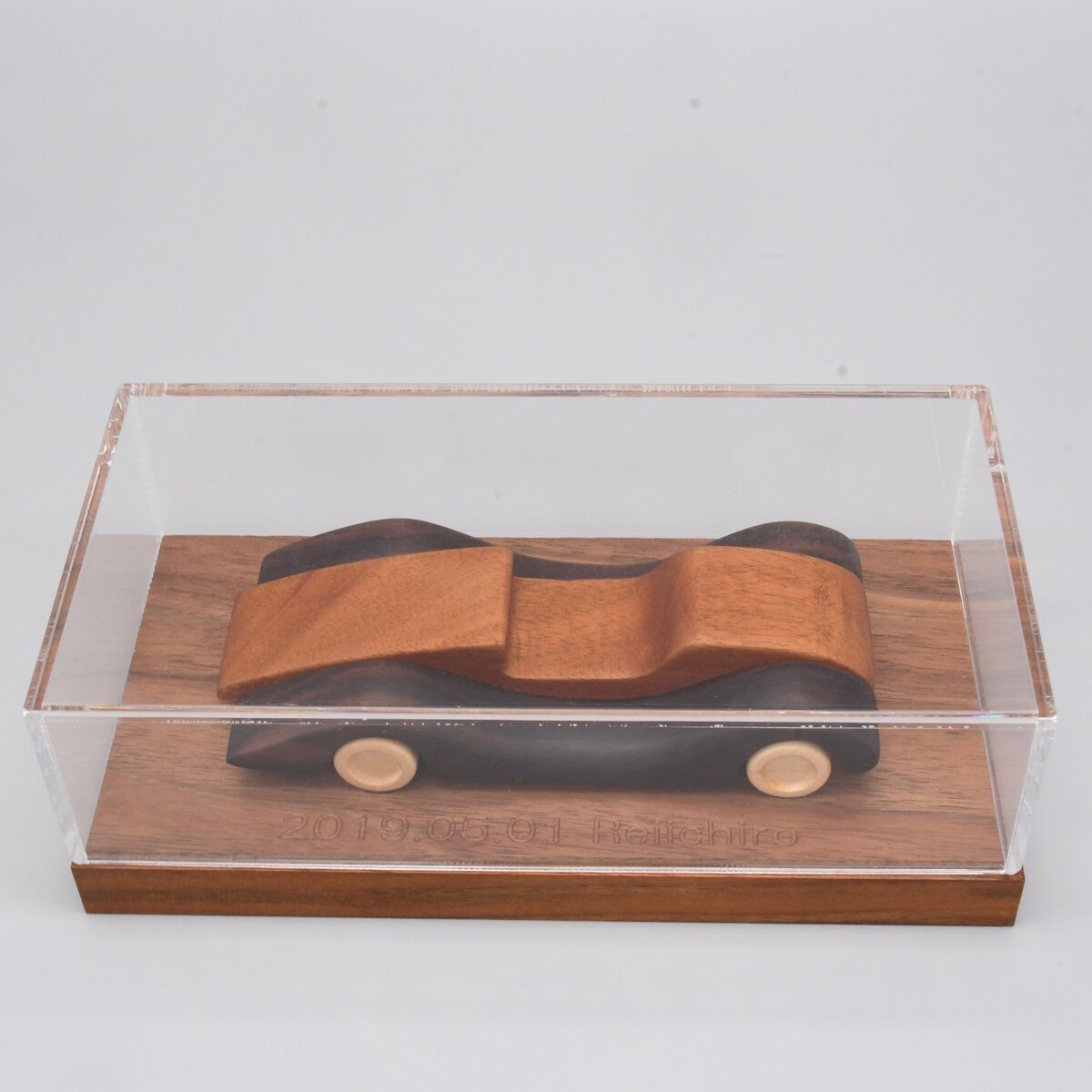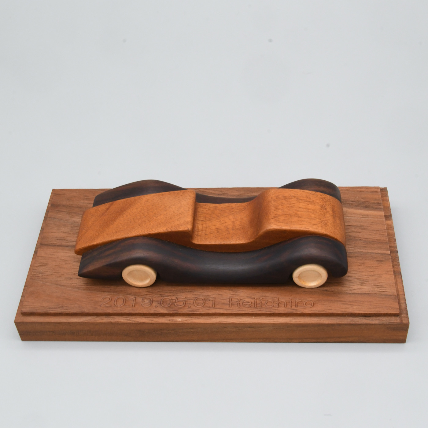 無垢の天然木を組み合わせてつくったオープンカーです。